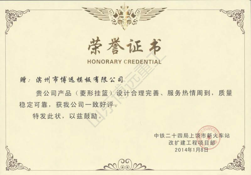 夏邑力拓路橋建筑工程有限公司榮譽證書